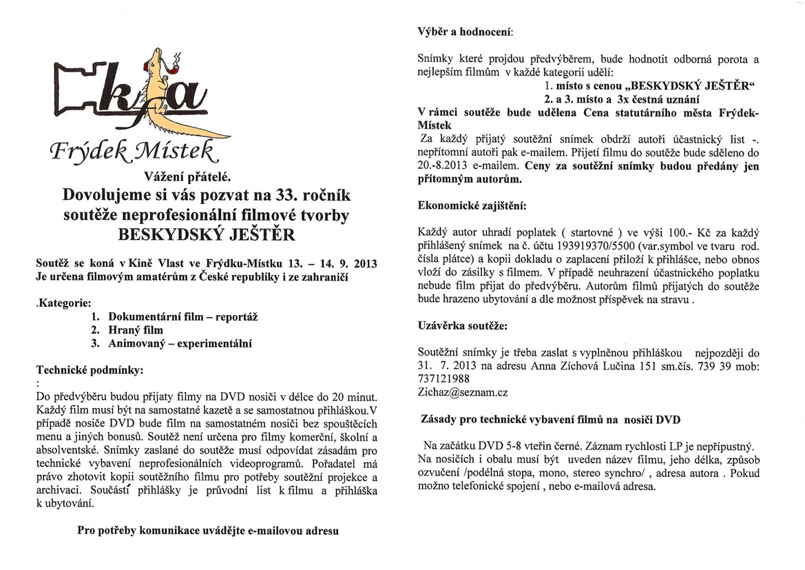 Anklicken für weitere Informationen...   Juniorfilm 2013 - Přihláška filmu (PDF)